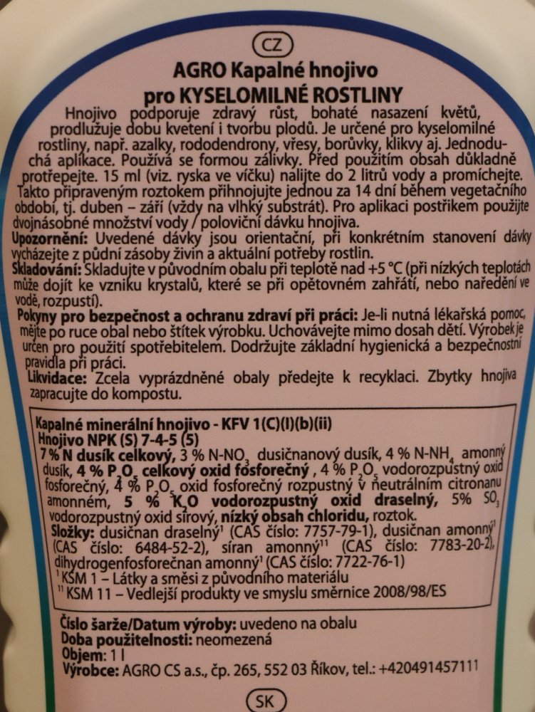 - borůvky, brusinky, azalky, rododendrony, hortenzie apod