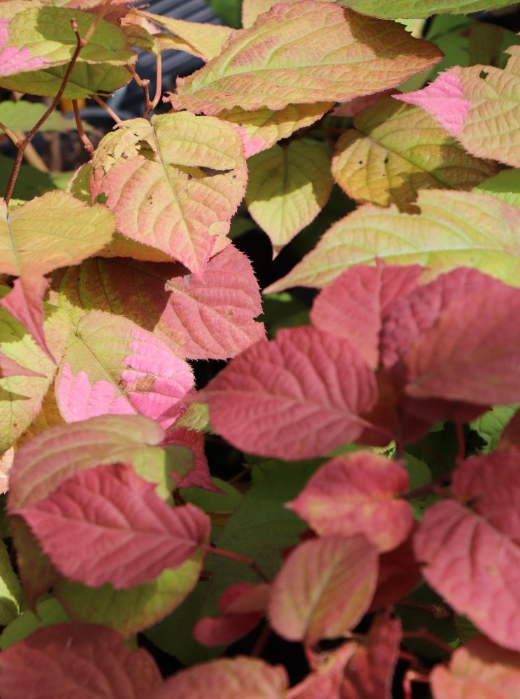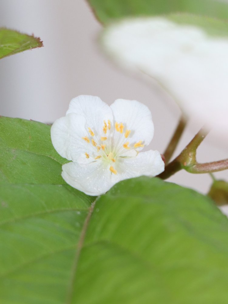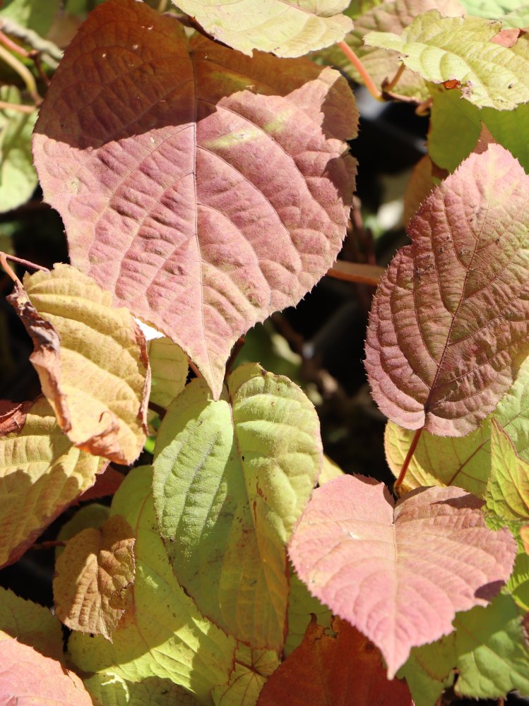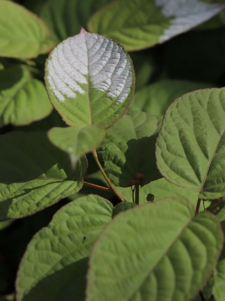 Samčí rostliny mají listy na špičkách zbarvené růžově nebo bíle. Samičí mají listy celé zelené, tím je tato rostlina zvláštní oproti ostatním druhům rodu.
