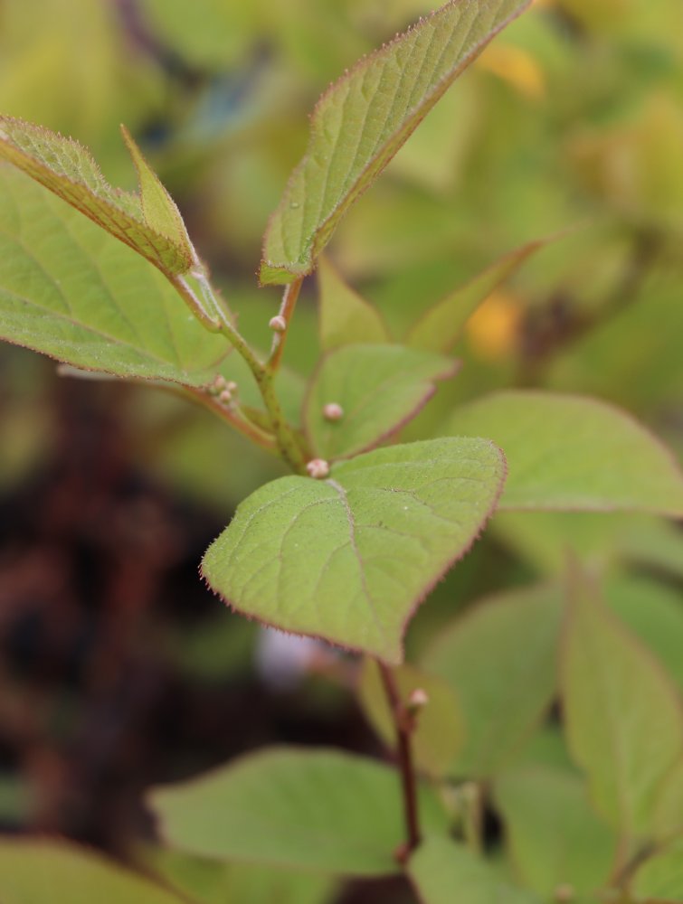 - Listy mají pilovitý okraj, jsou protáhlé až srdčité. Kvete v červnu drobnými bílými květy. Plody jsou drobné, žlutozelené.
