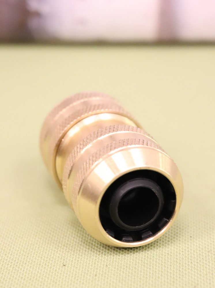 Mosazná hadicová spojka TD 19 pro hadici 3/4" se svornou objímkou na obou stranách.