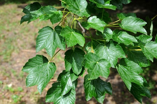 - Listy rostou na dlouhých červených řapících, jsou velké a dlouhé, s pěti velkými vyrůstajícími laloky a hrubými zoubky