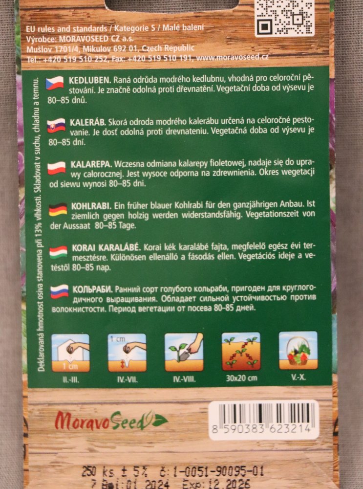 Kedluben raný modrý BLANKYT je značně odolná proti dřevnatění. Její vegetační doba od výsevu je 80 - 85 dnů. Lze ji předpěstovat ve sklenících a pozdější době i vysévat přímo na venkovní záhony. V době vytvoření dvou děložních lístků lze přepichovat a sázet ve sponu 30 x 20 cm. Plody lze sklízet od května do října dle výsevu.