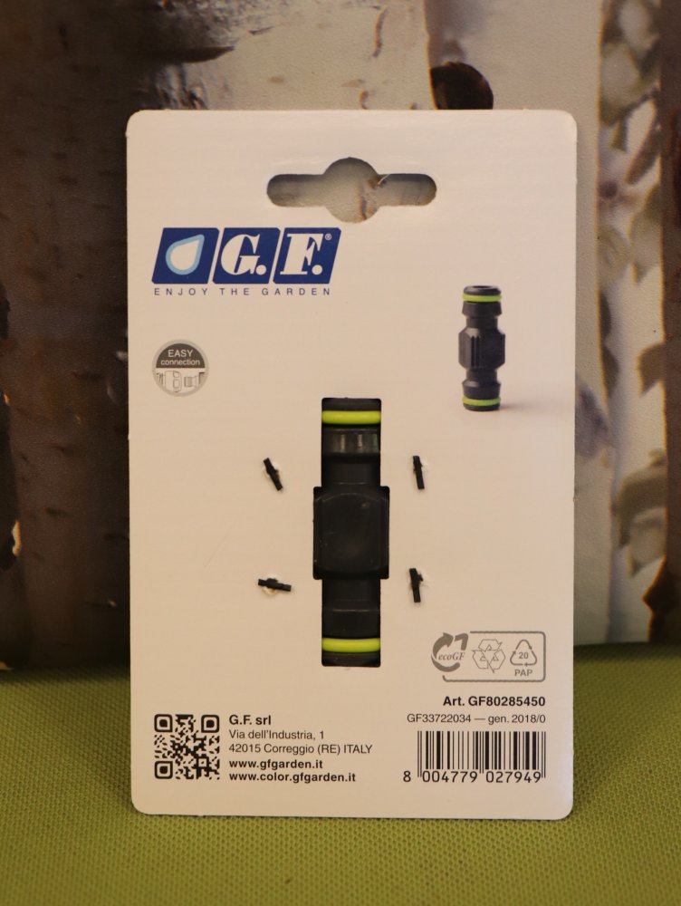 • oboustranná vkládaná plastová spojka FG pro spojení dvou zahradních hadic s rychlospojkou