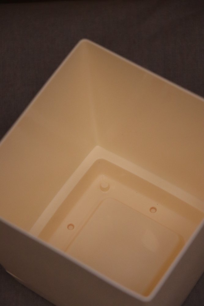 Jednoduchý plastový květináč.