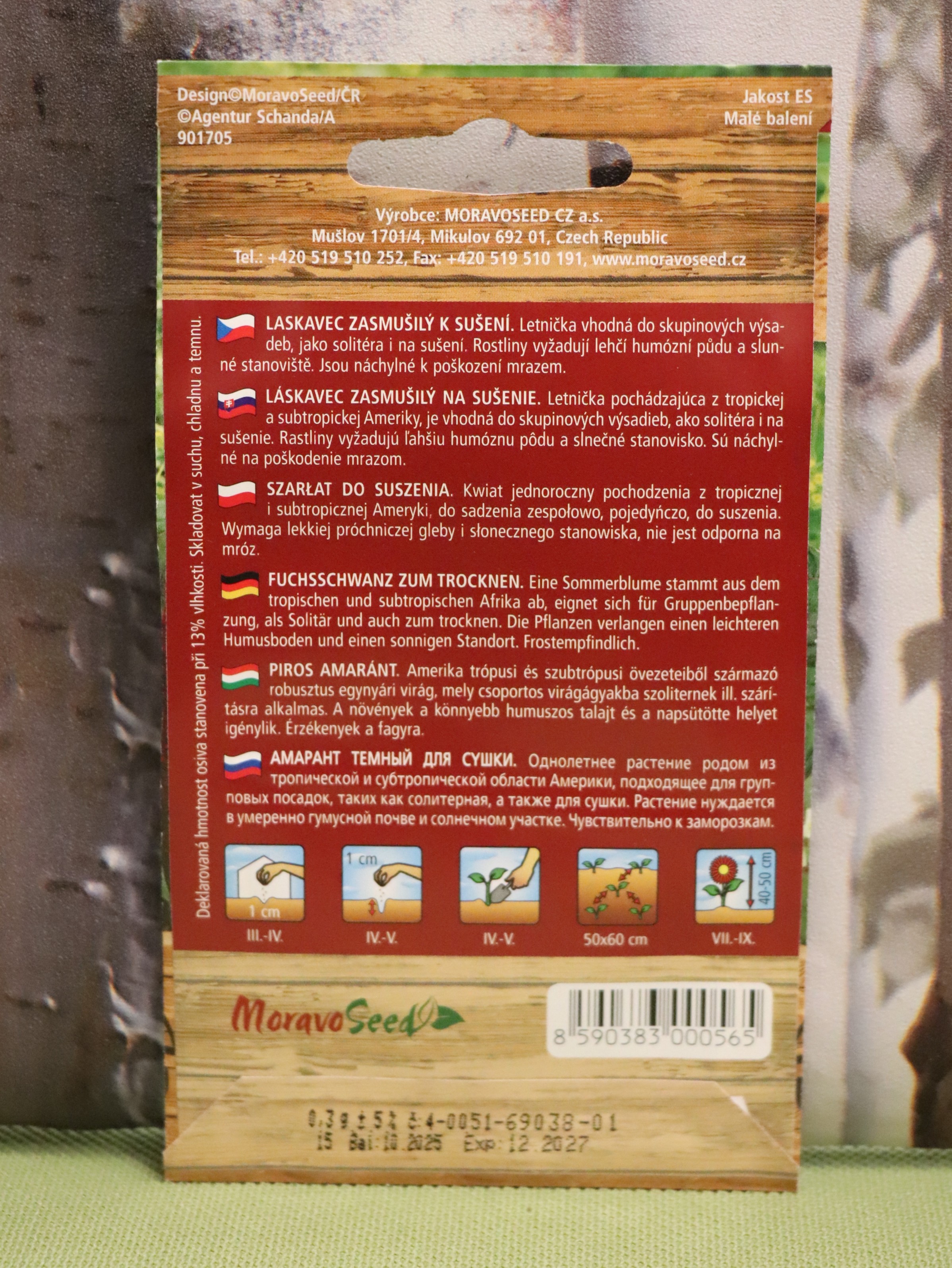Nádherná letnička, tmavě červené barvy do smíšených záhonů, či k sušení.