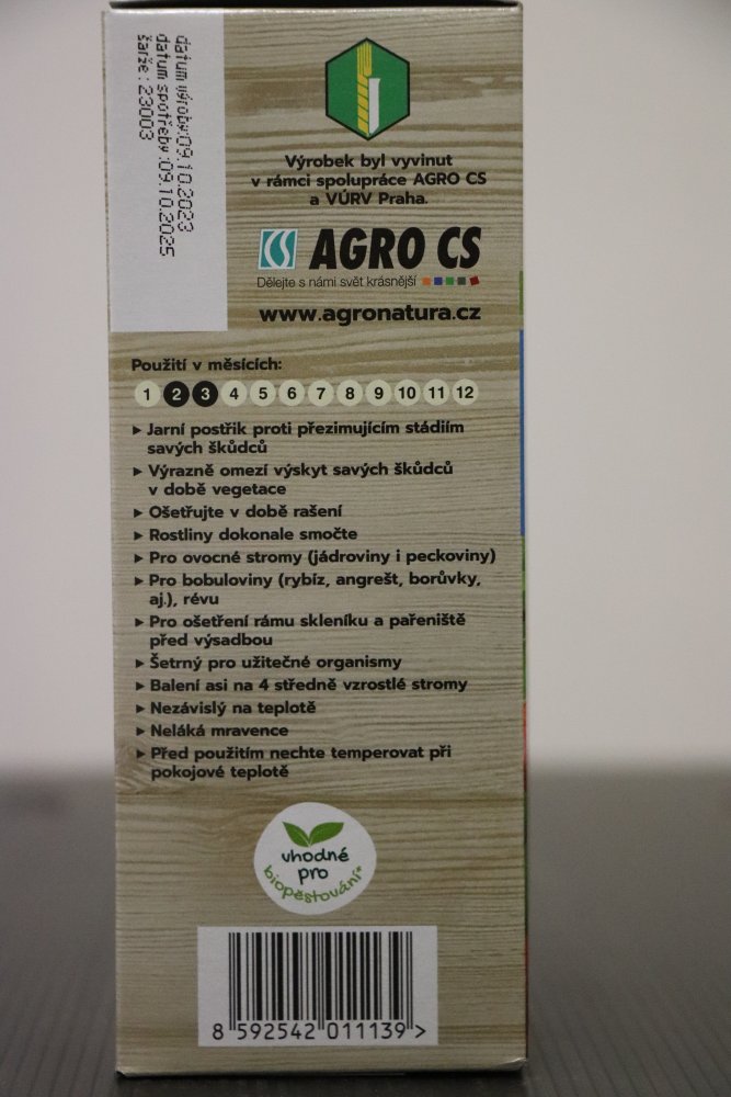 - neškodí užitečným organismům – neláká mravence, nevadí dravým roztočům – v době aplikace jsou „zalezlí“
