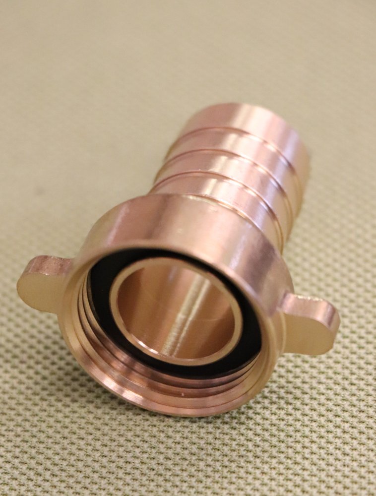 Mosazná oboustranná spojka pro PVC hadice 3/4" (19/20) s převlečnou matkou se závitem 3/4".