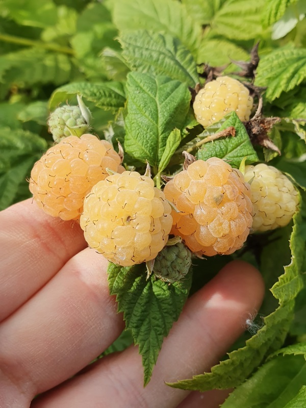 U žlutých odrůd to ochutnávání probíhalo dosti podobně. Valentina, Fall Gold, Blondy, All Gold. Oproti červeným odrůdám jsem však viděla mírné rozdíly v pevnosti plodů. Červené druhy se více rozplývaly v puse, zatímco ty žluté byly pevnější a více se musely kousat. Stále však bylo cítit to příjemné malinové aroma. Velikost plodů se mezi odrůdami v podstatě nelišila. Kromě jedné výjimky - Golden Everest – ta měla oproti ostatní opravdu výrazně větší plody.