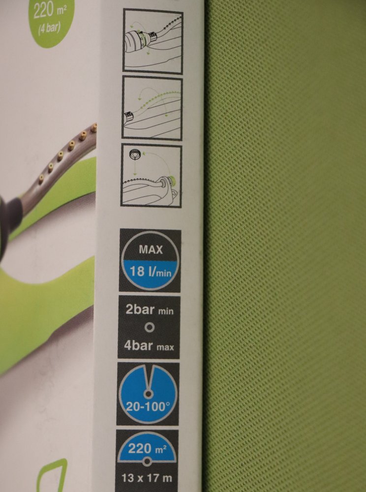 - maximální průtok 18 l/min při tlaku 2 - 4 bary